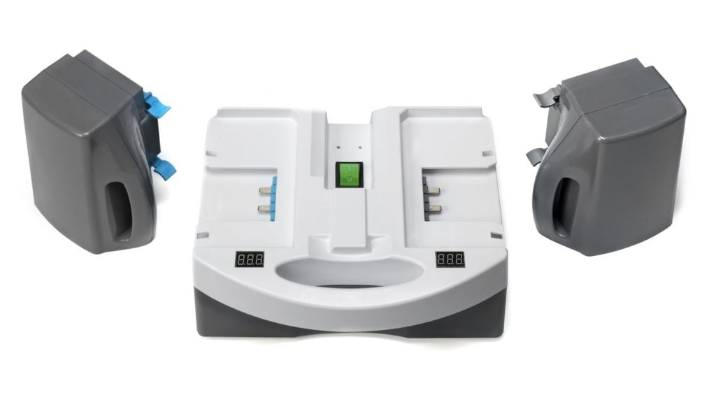 Încărcătoarele de baterii i-charger încarcă bateriile i-power într-un timp scurt. Cu 2 seturi de acumulatori i-power, puteți curăța continuu 24/7.